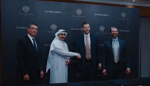 من جانبه، قال إريك ترامب، نائب الرئيس التنفيذي لمجموعة ترامب: "يُسعدنا توسيع نطاق أعمالنا في منطقة الشرق الأوسط، وإتاحة معايير الرفاهية العالمية التي تشتهر بها مجموعة ترامب، بالتعاون مع دار جلوبال، مؤكدًا أن هذا التعاون يُجسِّد رؤيتنا المشتركة لإنشاء مشاريع تطويرية بارزة تتميّز بالفخامة والجودة والرقي، وبالتعاون مع دار جلوبال، نضع معايير جديدة للتميز؛ بهدف تلبية الطلب على العقارات المميَّزة في الأسواق الرئيسية".