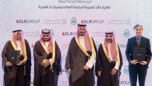 وقّعت شركة "رؤى المدينة القابضة" – إحدى الشركات المملوكة لصندوق الاستثمارات العامة – وشركة DLR Group Middle East المتخصصة في التصميم العمراني والمعماري، عقد تصميم المخطط العام لأرض مشروع "دار الهجرة" بالمدينة المنورة، حيث رعى صاحب السمو الملكي الأمير سلمان بن سلطان بن عبدالعزيز، أمير منطقة المدينة المنورة، مراسم التوقيع، بحضور نخبةٍ من القيادات، من بينهم معالي المهندس فهد بن محمد البليهشي، الأمين والرئيس التنفيذي لهيئة تطوير المنطقة، ونايف بن صالح الحمدان، رئيس مجلس إدارة شركة رؤى المدينة القابضة، وفق وكالة الأنباء السعودية "واس".