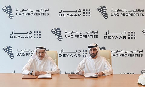 أعلنت شركة أم القيوين العقارية عن توقيع اتفاقية شراكة إستراتيجية مع شركة ديار للتطوير، المدرجة في سوق دبي المالية؛ بهدف تطوير مشاريع عقارية على واجهة أم القيوين البحرية، في خطوةٍ تعزز التنمية المستدامة في الإمارة.